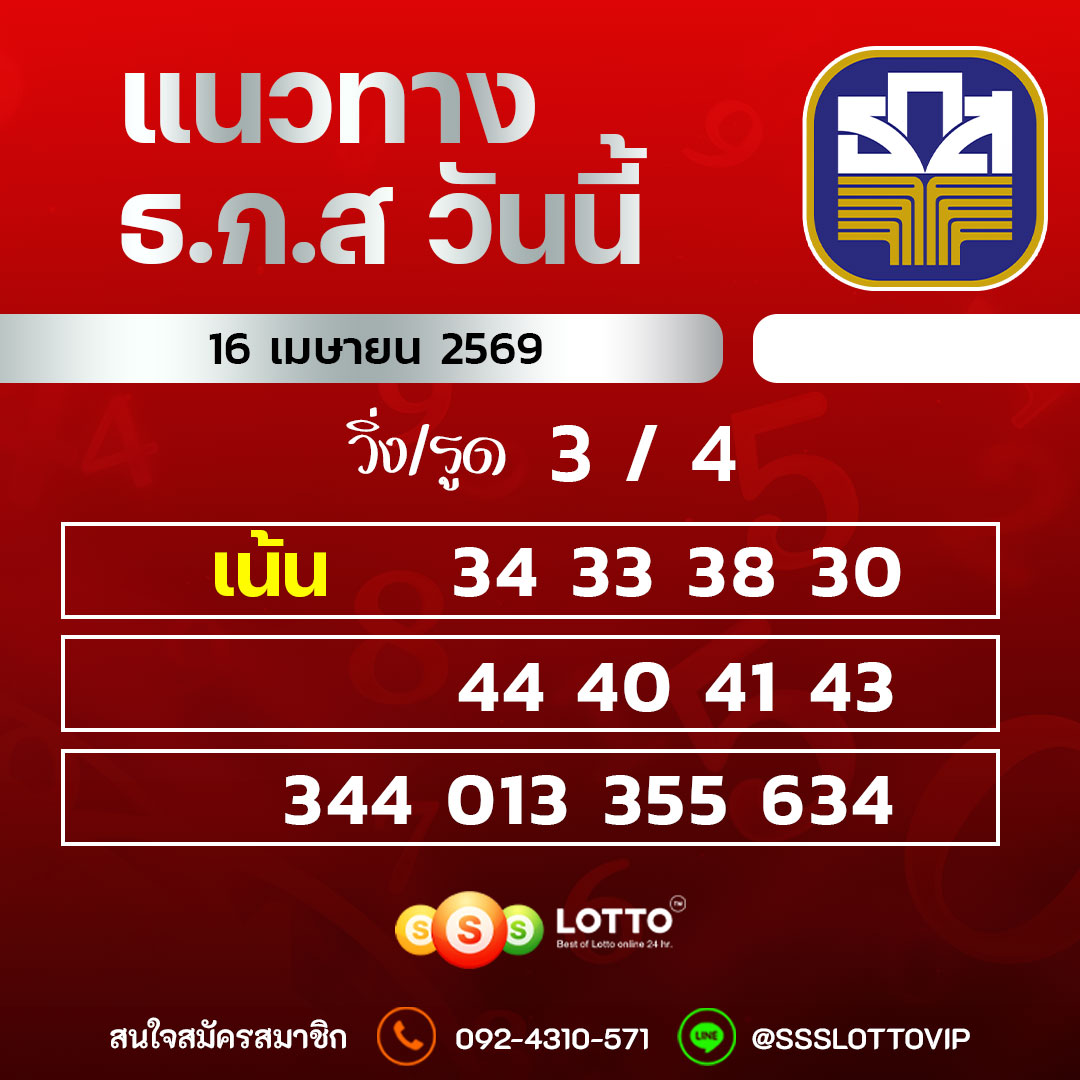 แนวทางหวยธ.ก.ส 16/04/69 วันนี้แม่นๆ แนวทางหวยออนไลน์ล่าสุด เว็บนี้ไม่มีโกง เเทงหวย หวยออนไลน์ Ssslotto