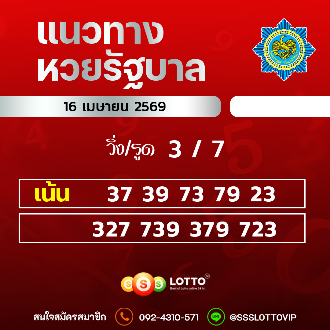 แนวทางหวยรัฐบาล 16/03/69 เลขเด็ดหวยเด็ดงวดนี้ หวยรัฐบาลแม่นๆ เเทงหวย หวยออนไลน์ Ssslotto